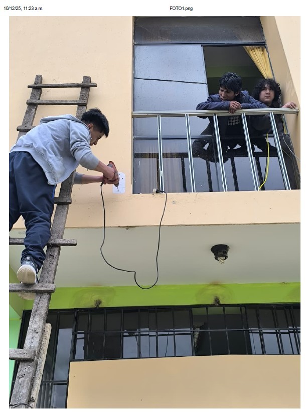 El Grupo Monovalente de Servicio Social Universitario denominado Estudiantes en Innovación y Avance Tecnológico (EIAT), conformado por estudiantes de la Escuela Profesional de Ingeniería de Sistemas de la Universidad Nacional de Huancavelica, ha llevado a cabo el proyecto de mantenimiento e instalación de cámaras de seguridad en la Institución Educativa “Tupac Amaru II” ubicada en Pampa Blanca, Distrito de Daniel Hernández. Este proyecto es parte de la proyección social universitaria, cuyo propósito es contribuir al bienestar de la comunidad educativa a través de la implementación de soluciones tecnológicas orientadas a la mejora de la seguridad escolar.